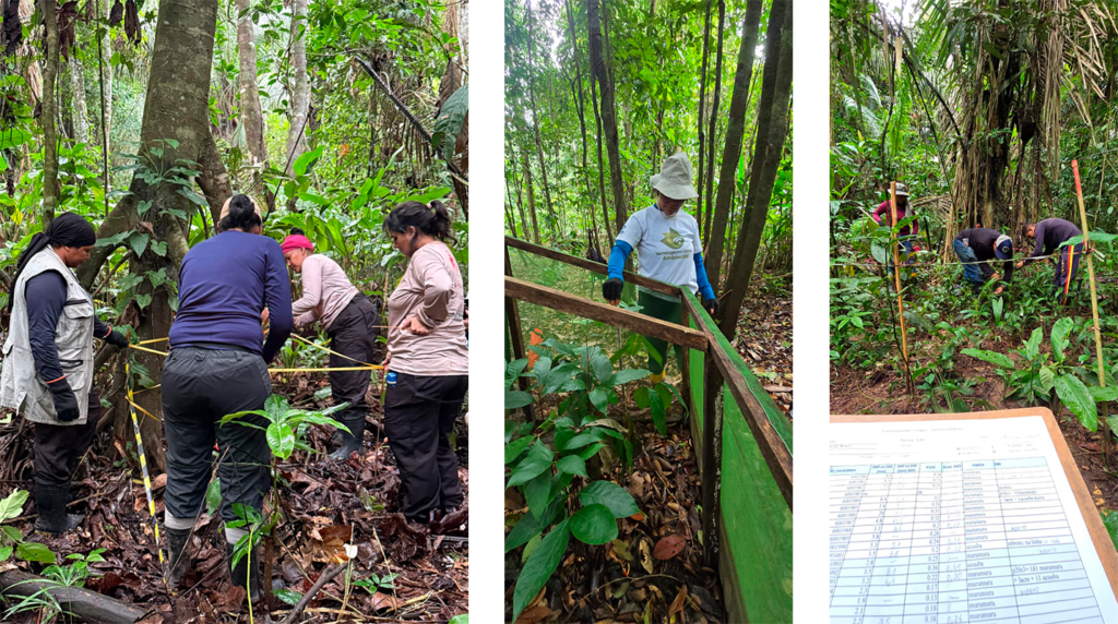 Cada parcela (0,5ha) é demarcada como um território de observação contínua. Ali, cada árvore conta uma história. São monitorados todos os indivíduos (adultos, juvenis e plântulas) de andiroba, murumuru, ucuúba e açaí. Com fita métrica, trena e cadernos de campo, são registradas a altura, o diâmetro, a mortalidade e a natalidade das espécies. Ano após ano, os dados revelam padrões de crescimento, regeneração e resistência.